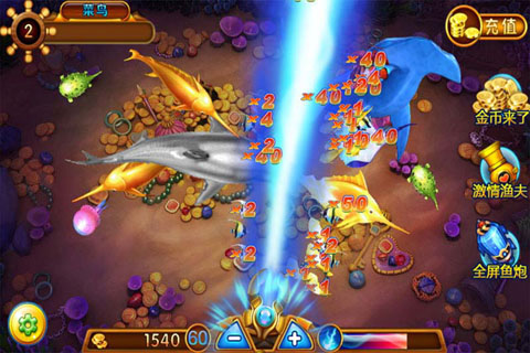 武器多样:玩家可自由切换炮台倍率,倍率越高,消耗金币越多,击中大鱼的概率也越高;